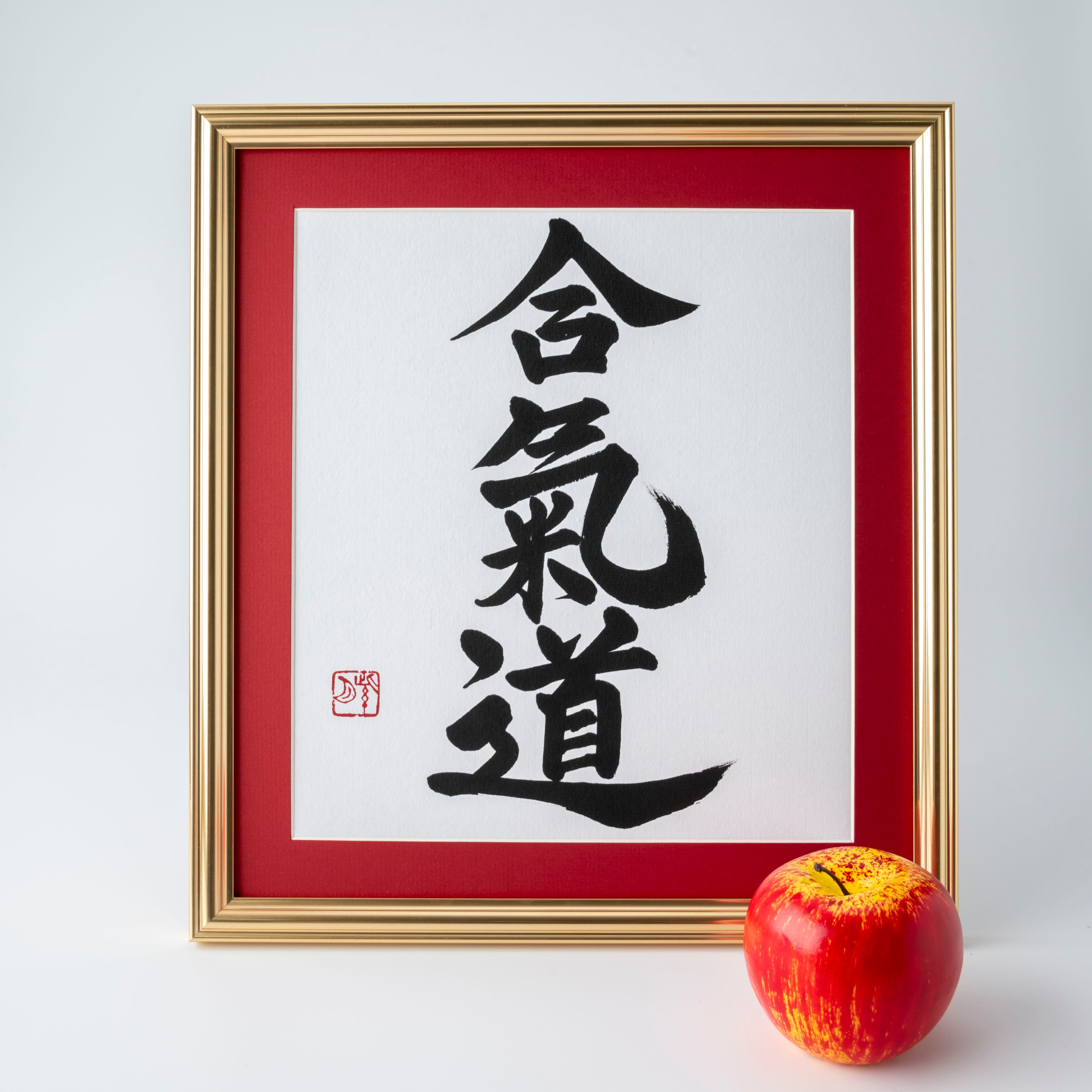 This framed calligraphy artwork features the proud phrase 合気道 (Aikido). It embodies the calm focus, inner strength, and respectful discipline that lie at the heart of Aikido — qualities that guide practitioners in daily life.